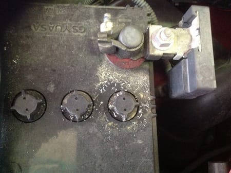 弱ってきた目安として、バッテリーの上のほうに白い粉状の物が出たり、