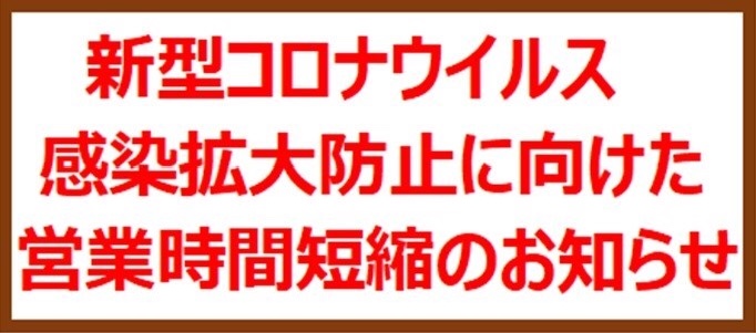 「緊急事態宣言を受けた営業時間短縮のお知らせ」