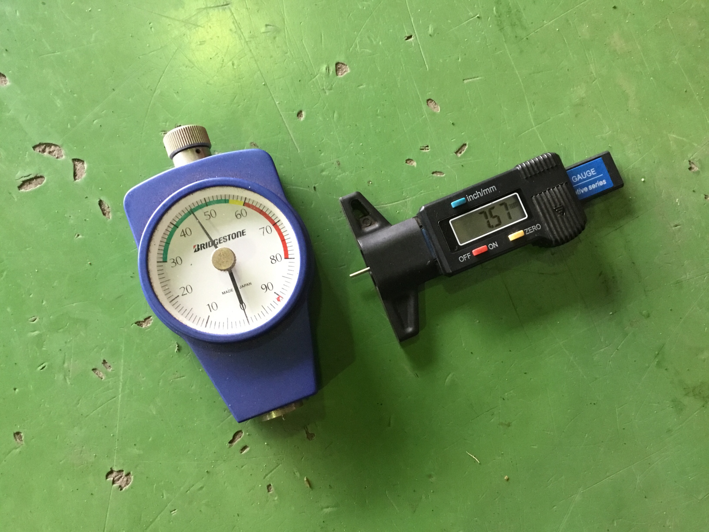 硬度計とデプスゲージを使用した点検をしています。