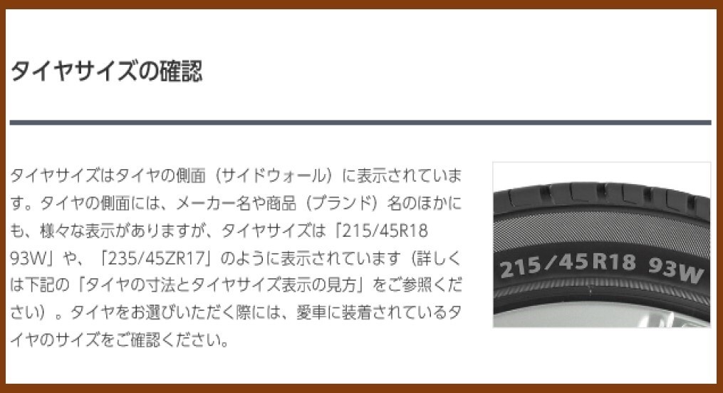 ①タイヤサイズを必ずご確認下さい。