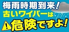 こんにちはっっヽ(○・▽・○)ノ゛ タイヤちゃんだよ~~!! きょうは、どんより曇り空ー(・´з`・)まさに梅雨入りってかんじがするね(・´з`・) これからは、雨が多くなってワイパーにたーくさんお仕事をしてもらう季節だよ!! 雨の日に視界が悪いととっても危険っ((;゚Д゚)) 「前が見えにくい~(>ω