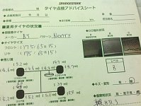 本日の作業はタイヤ点検。 毎月1日~7日まではレディースウィーク♪ 多くの女性のお客様がご来店いただいております。 「無料タイヤ点検って何をするの?」 という質問を頂きます。 わかりやすく伝えるために、 「タイヤ点検アドバイスシート」を使ってご説明させていただきました。 この様な書式で ...