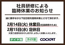 【2月14日(火)・15日(水)】お休みのお知らせ( ・◡・ )♫