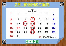 7月19日(水曜日)は、「定休日」となります( ・◡・ )♫