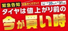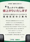 8月1日よりタイヤの価格が値上がりいたします。 当店が取り扱うタイヤメーカー「ブリヂストン」は、8月1日より国内市販用タイヤ(乗用車及びバン用 夏・冬タイヤ)の値上げを発表しております。 タイヤ製造メーカーである株式会社ブリヂストンが物流関連費高騰により、 国内市販用タイヤ(乗用車及びバ...