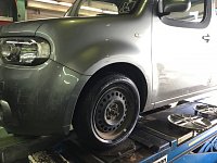 キューブのタイヤ交換作業になります。 交換前のタイヤは全体的にヒビが入ってきてしまっていました>< タイヤサイズは175/65R15になります。 今回はデイトンに交換することになりました。 デイトンはブリヂストンの海外工場で生産しているタイヤになります(*´ω`*) タイヤ交換後ならし走行を、100k...