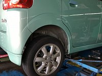 縁石か何かにぶつかってしまったということでタイヤ交換にレッカーされてのご来店です!! 実際にタイヤを見てみると横の部分がぱっくりいっていてこのままでは使い物にならないので 交換することになりました(∩´∀`)∩ タイヤサイズ:155/65R14 交換後タイヤ:ネクストリー 交換前に着いていたタイヤ...