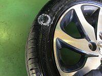 今日の作業はパンク修理になります。 タイヤの接地面に見るからに大きいのが刺さってるなと思い抜いてみると、 刺さり具合としては短めでした。 エア漏れはしてしまっていたためパンク内面修理を実施しました。 都内の方からいらしていたので帰りも高速道路を走行されることを考えると、 外面修理で...