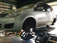 今日の作業はノートのタイヤ交換になります♪ 先日パンクでご来店いただいたんですが、パンクした所が修理のできない場所で 後日タイヤ交換をすることになり今日タイヤ交換にご来店頂きました! パンクしてしまっているタイヤだけでなく4本とも交換することになり、 交換後のタイヤはブリヂストンの...