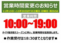 みなさまこんにちは( ・◡・ )♫ 11月・12月の【土・日・祝日】は、 スタッドレスタイヤ履き替えシーズンに伴い、営業時間を延長致します。 ※状況により、受付時間が早まる場合がございます。 #タイヤ館 #ブリヂストン #アライメント #4輪ホイールアライメント #旭 #匝瑳 #干潟 #八日市場 #東庄 #野栄 ...