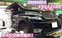 【トヨタ/ヴェルファイア】タイヤ交換+アライメント作業!!d(・∀・○)