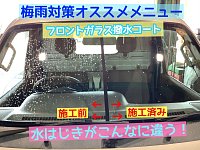 本日は、【梅雨対策】のオススメメニュー!! 【フロントガラス撥水コート】をご紹介いたします(o・∀・)b゙ 雨の日の運転中、フロントガラスに水が残って、ワイパーを動かしてもスッキリしない!なんて思ったことはありませんか??(`・з・)ムー フロントガラスの撥水コーティングをすると、パァーーっと雨...