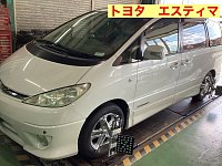 本日ご紹介するのはトヨタ エスティマのアライメント調整です。タイヤが偏摩耗する症状でした センサーを付けていきます。 タイヤの角度を真っ直ぐに調整していきます。 調整終了です。このようにタイヤが偏摩耗するなどありましたらタイヤ館へご相談ください。