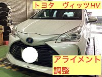 本日は、トヨタ ヴィッツHVのアライメント調整のご紹介です。 以前、走行中、右側のタイヤをぶつけてそれから右に流れるというご相談でした。 測定結果はやはり右前のタイヤに異常ありでした。 左右の調整部分を基準値に合わせます。 この様なご相談もタイヤ館へお任せ下さい。WEBでも予約を受けて...