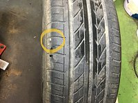 本日はトヨタ ポルテがパンクでご来店です。 空気圧が低下しているタイヤを確認してみると 釘のようなものが2つ刺さっていてどちらからも 空気が漏れてしまっていました。 今回のように距離が近い場合はパンク修理が不可となります。 キズの間隔が40㎝以上だと修理できる可能性が高かったのですが、...