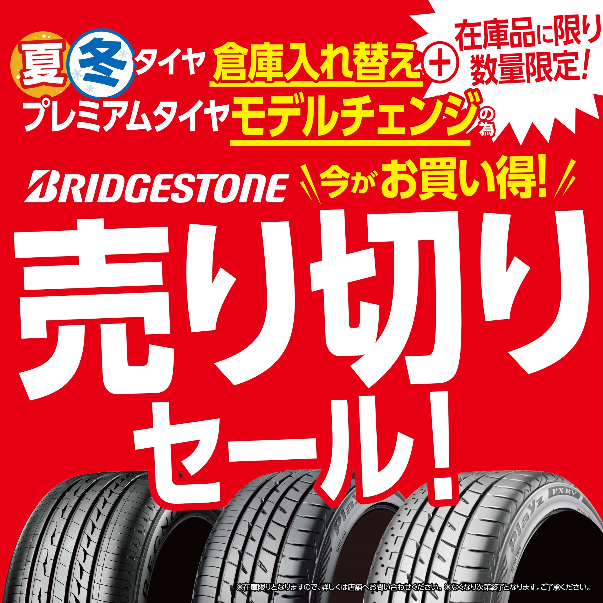 タイヤは売り切りセール中です!
