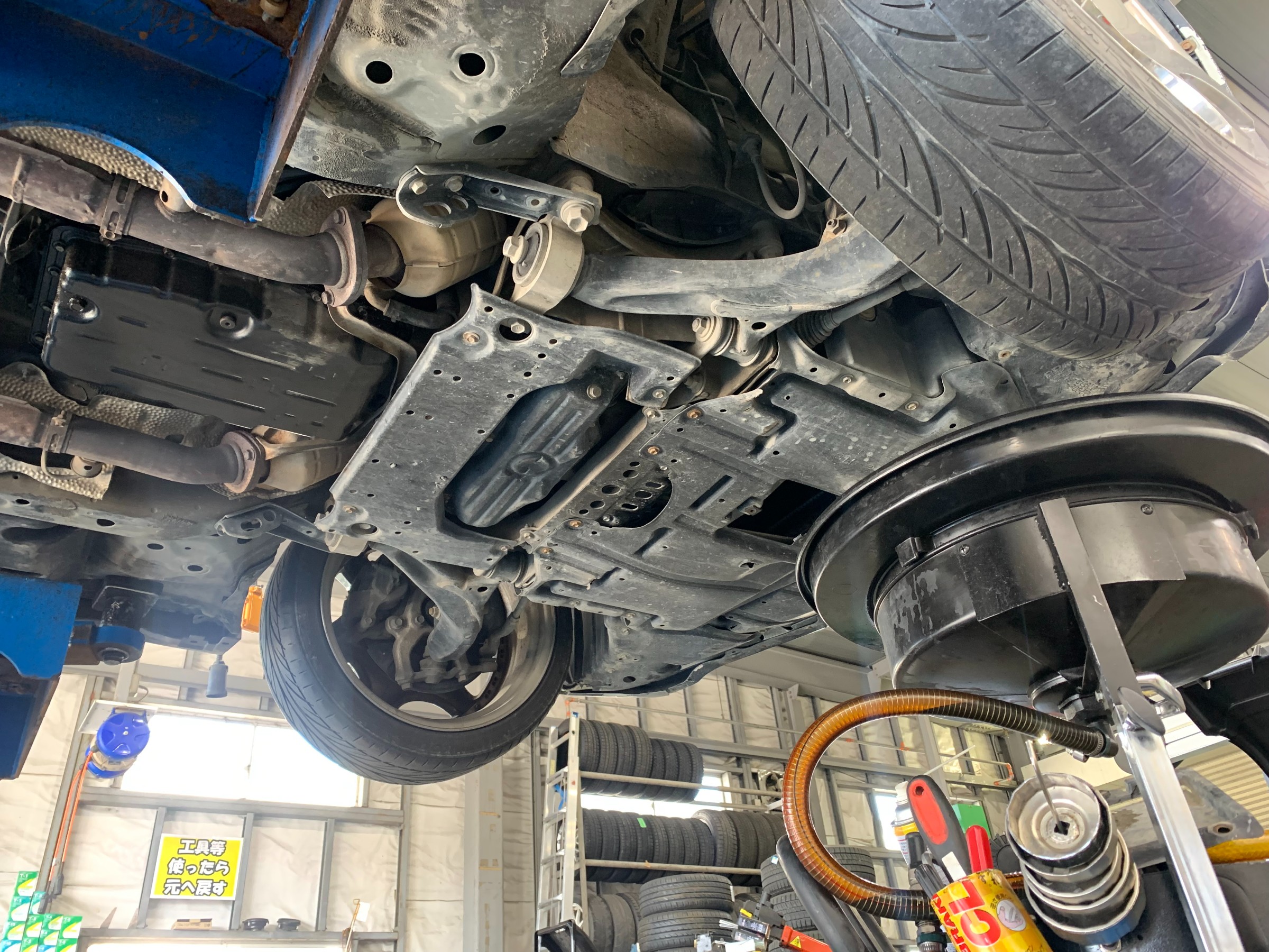 オイルが全部抜けたらドレンボルトを締め直して車を下ろします!