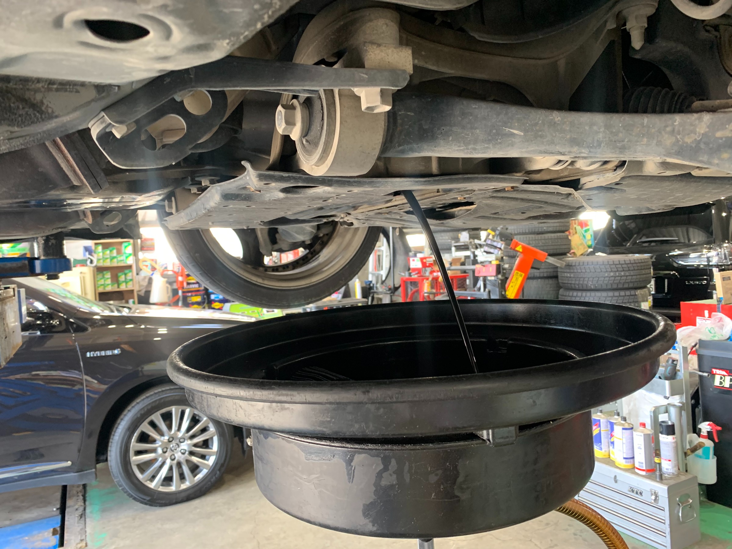 リフトで上げたらまずは元々入っていたオイルを抜く作業!!