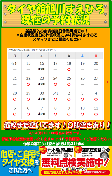 こんにちは!タイヤ館旭川すえひろです(^▽^)/