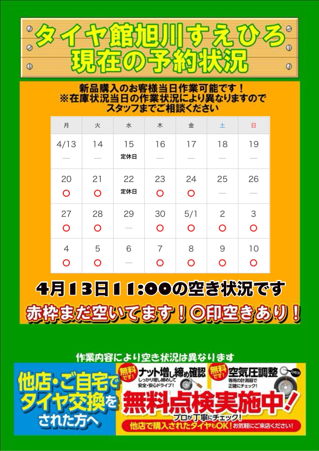 また、当日来店頂いてからの作業も可能なので是非ご来店お待ちしてます!