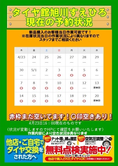 タイヤ点検・安全点検/タイヤ履き替え/オイル交換/その他ピット作業の予約本日のタイヤ履き替え順番待ち予約 ※クローク契約会員の方はご利用いただけません