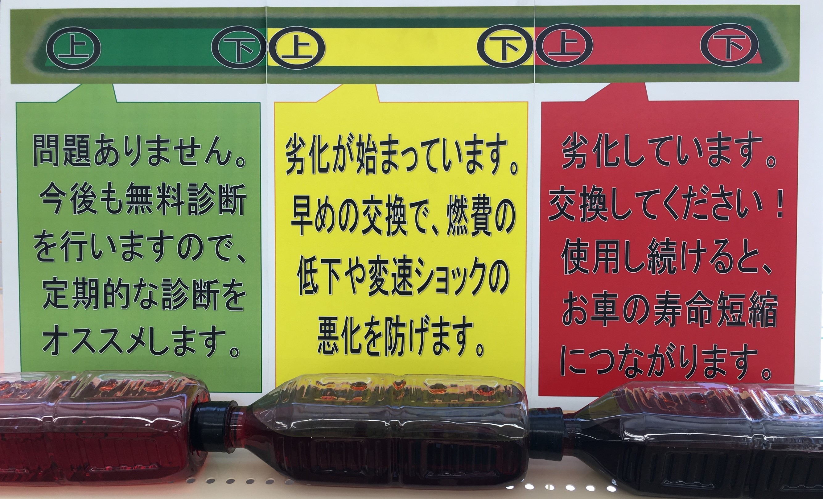 グリーンゾーンのオイルとレッドゾーンのオイルの差は一目瞭然ですね。