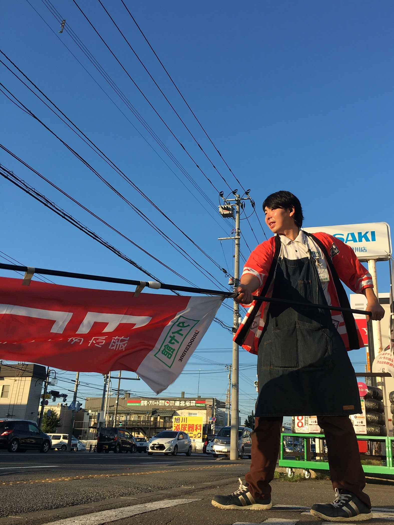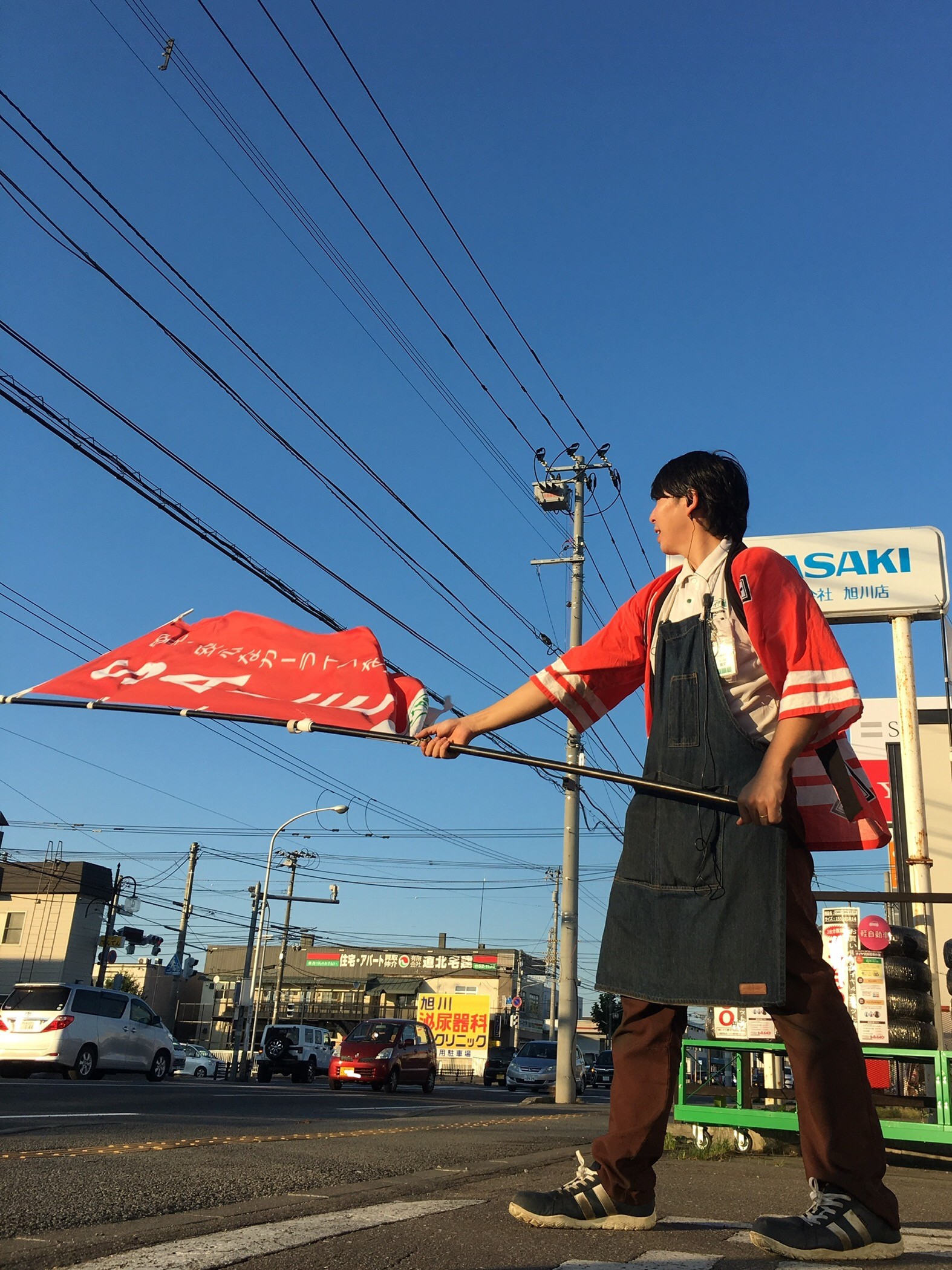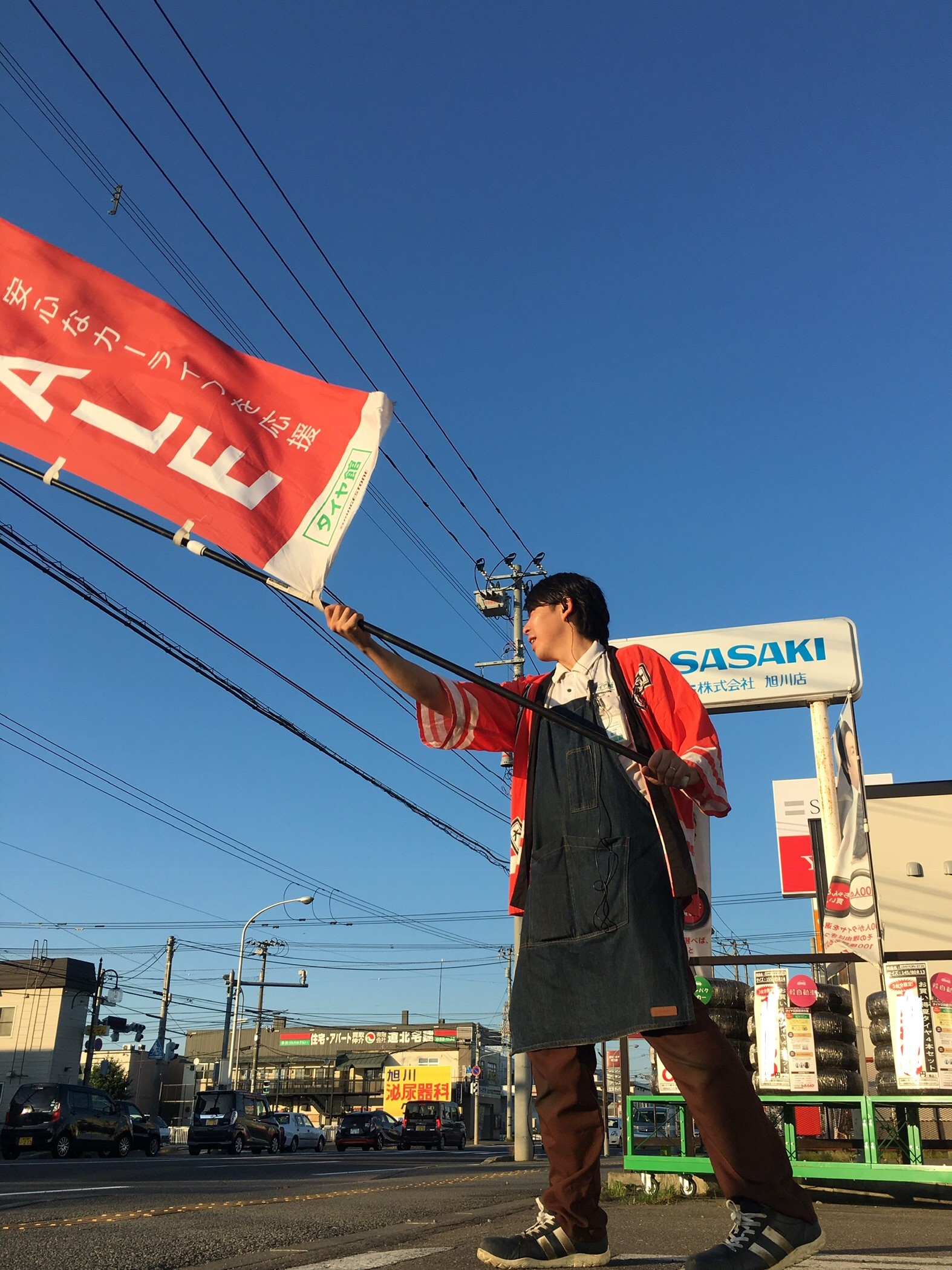 大売り出し2日目! ポスト 2019年9月8日 こんにちは!しまだです!(^^)! 関東の方では台風が接近している中、旭川はカラッと晴れているけど真夏日! 暑かったり寒かったり気温差に参ってしまいます。 炎天下のもと、夕日に染められ、懸命に旗を振り続ける1人の男がいた・・・。 売り出しは16日(月)までやっています。 どうか、彼の雄姿を見に来てください。 担当:嶋田