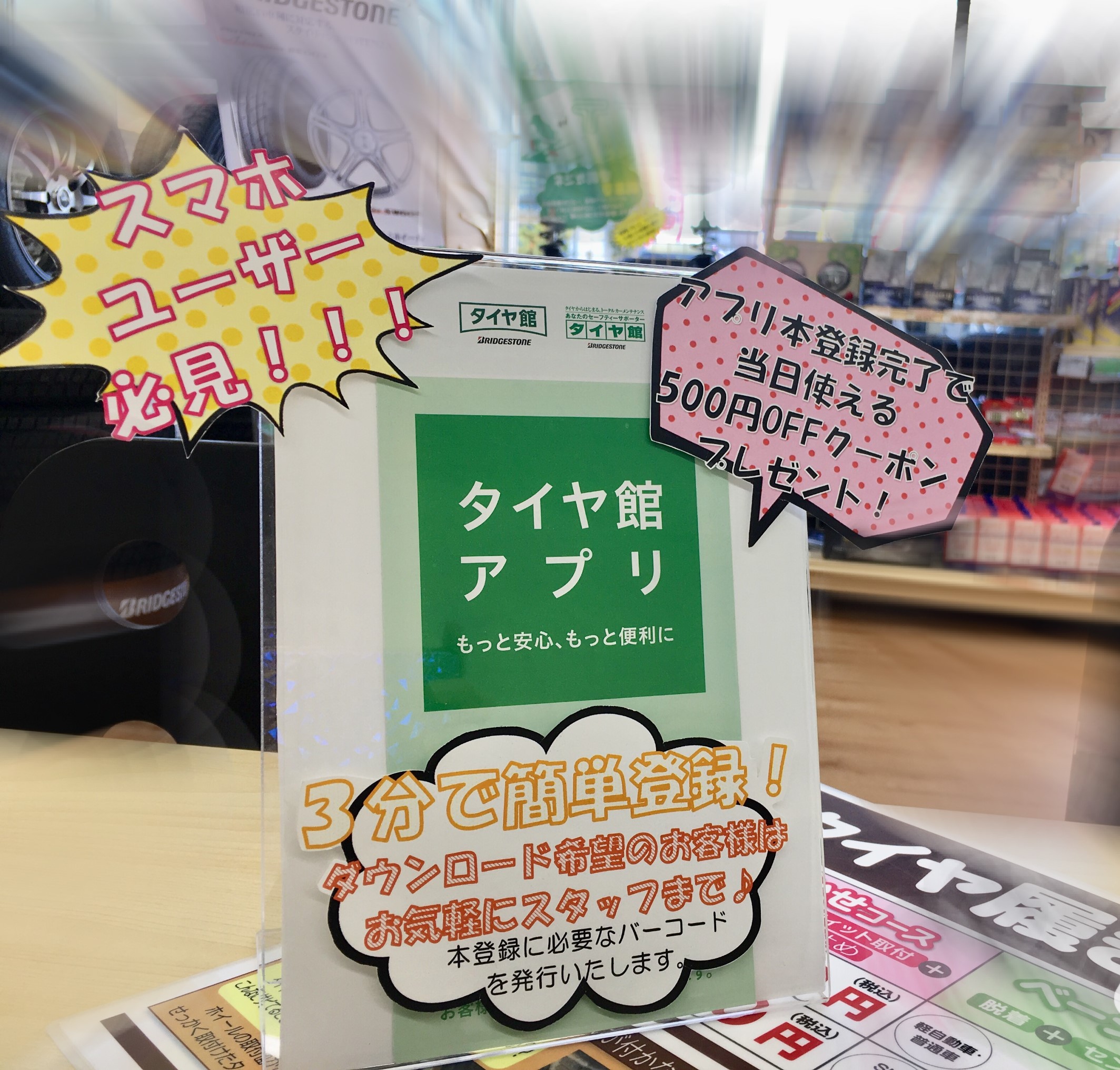 タイヤ館アプリをダウンロードして新規会員登録すべし!