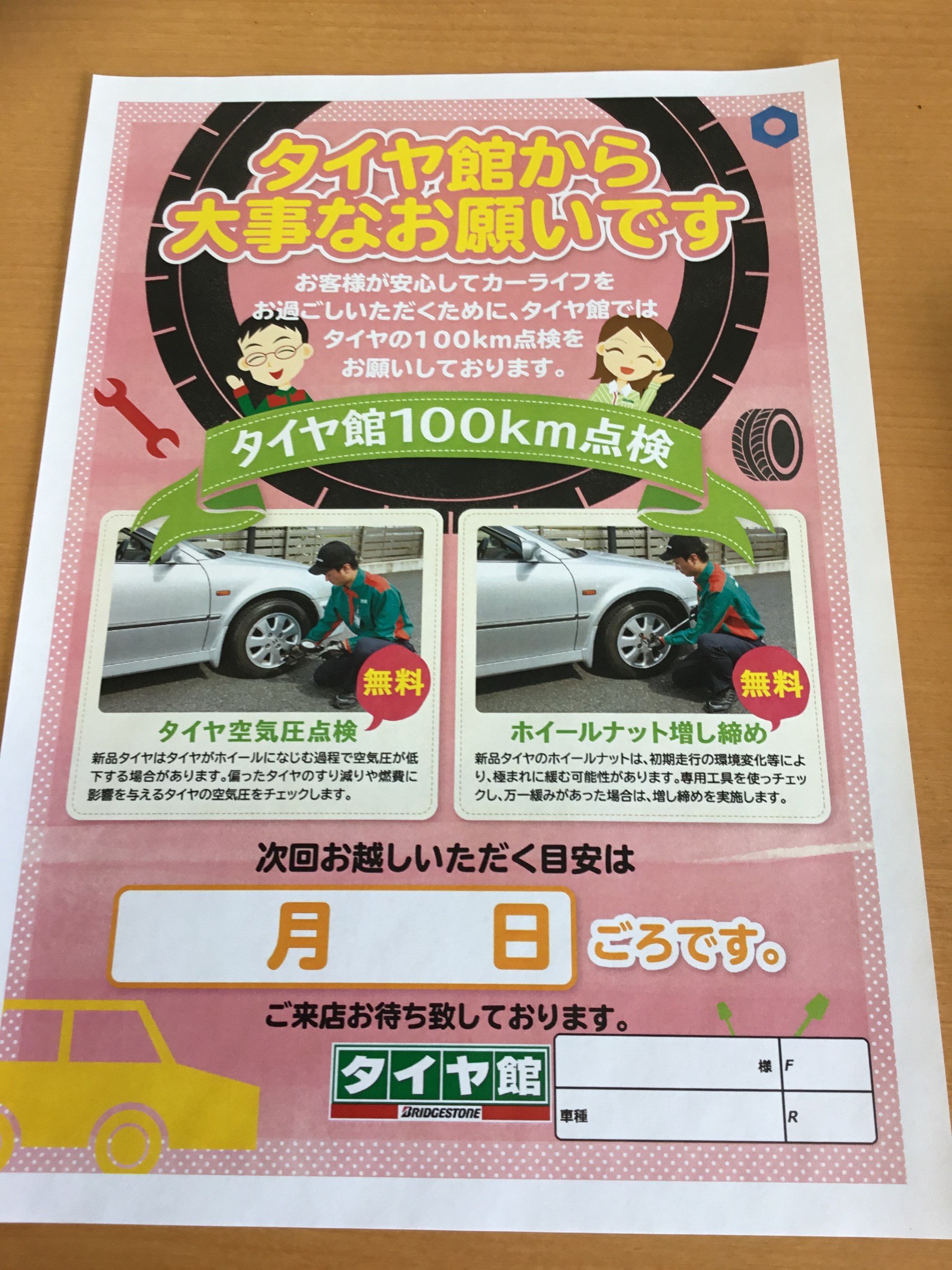 タイヤ交換された方にはこちらの用紙をお渡ししております。