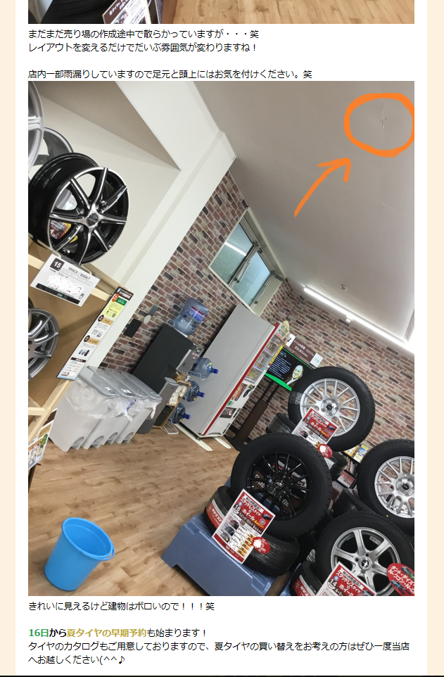 【番外編】差し入れをいただきました!&タイヤ館旭川雨漏り店再び