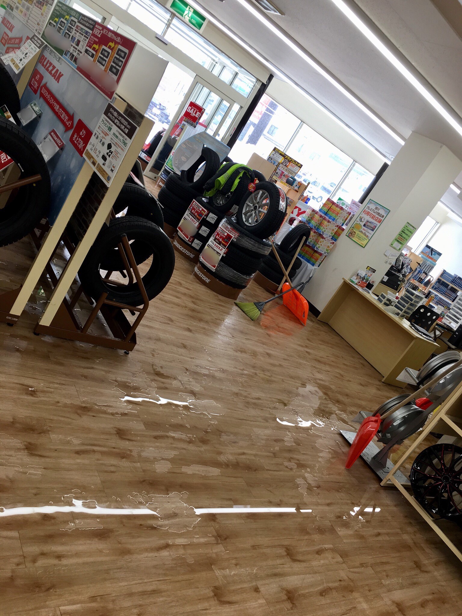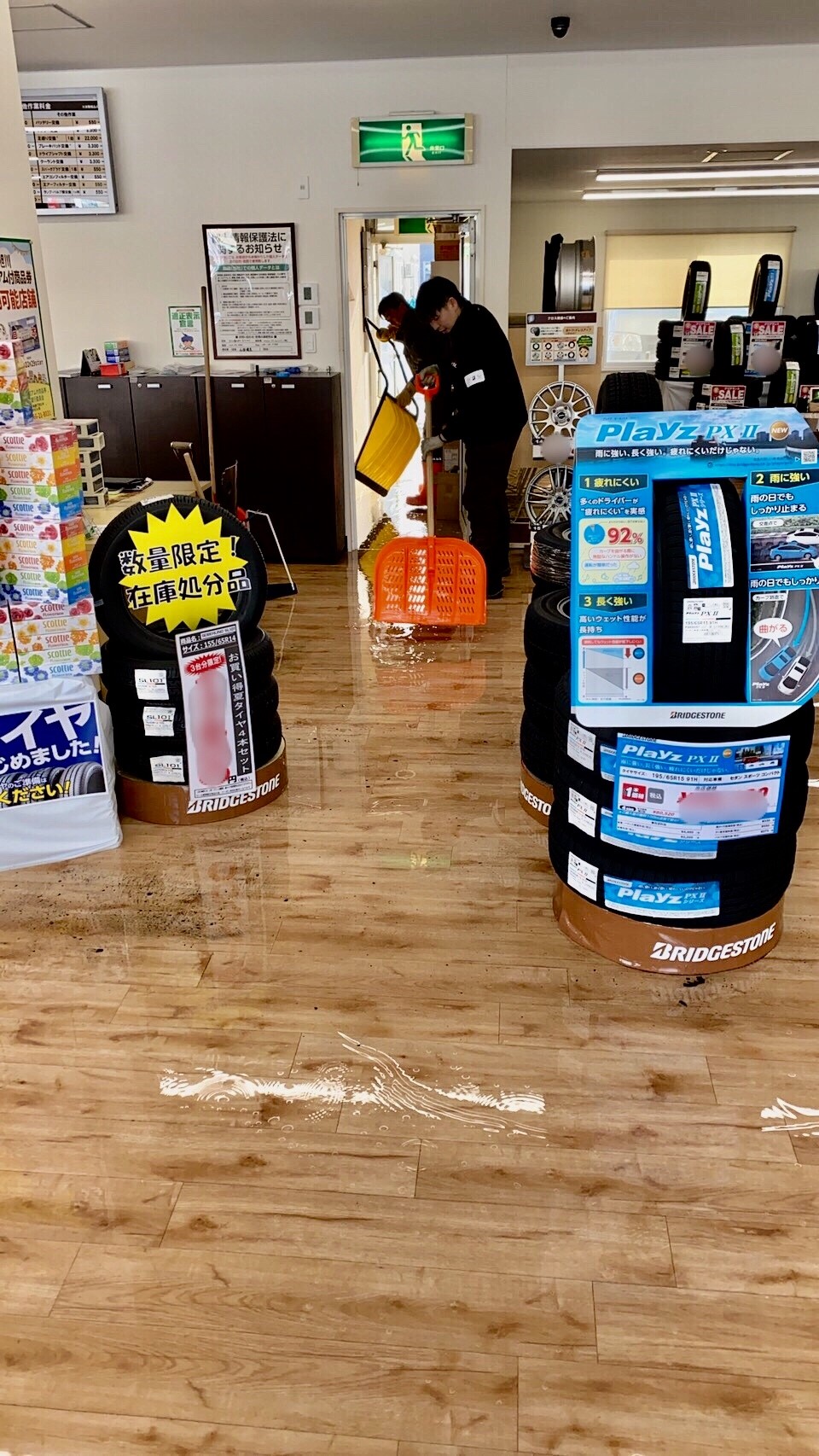 水が止まるのを待つしかなく・・店内が冠水しました。