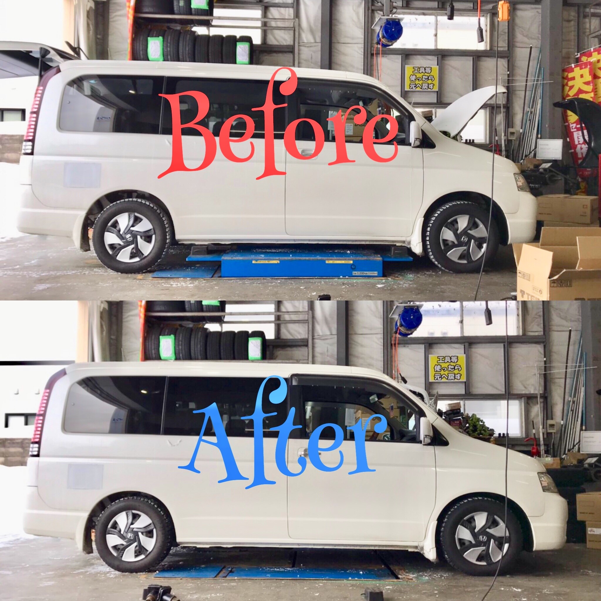 ステップくんを見て車高が下がってることにすぐに気付きましたが、ものすごく大喜びしてもらえました!