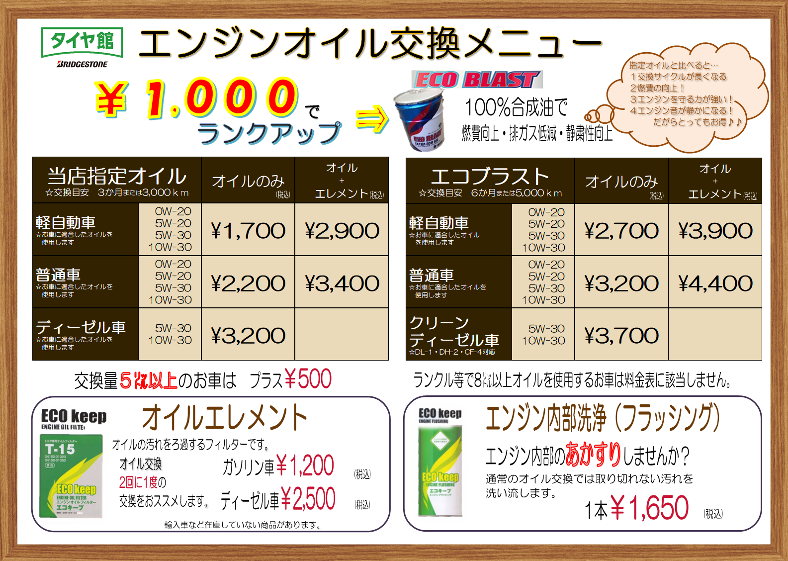 3月1日以降、オイル交換料金が変更となります。