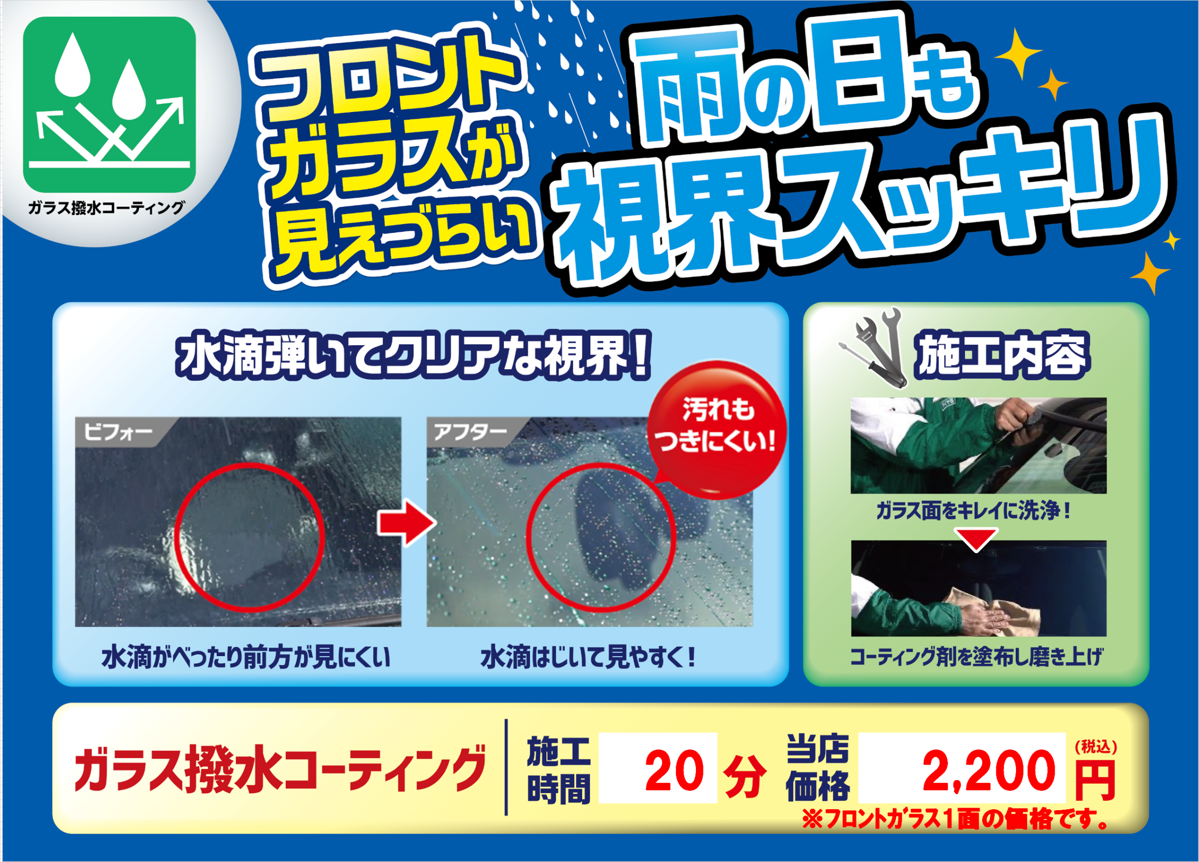 当店の「ガラス撥水コーティング」をおススメ致します!!!!