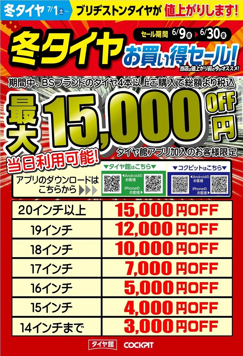 いつもタイヤ館旭川大雪通り店をご利用頂き、誠にありがとうございます!