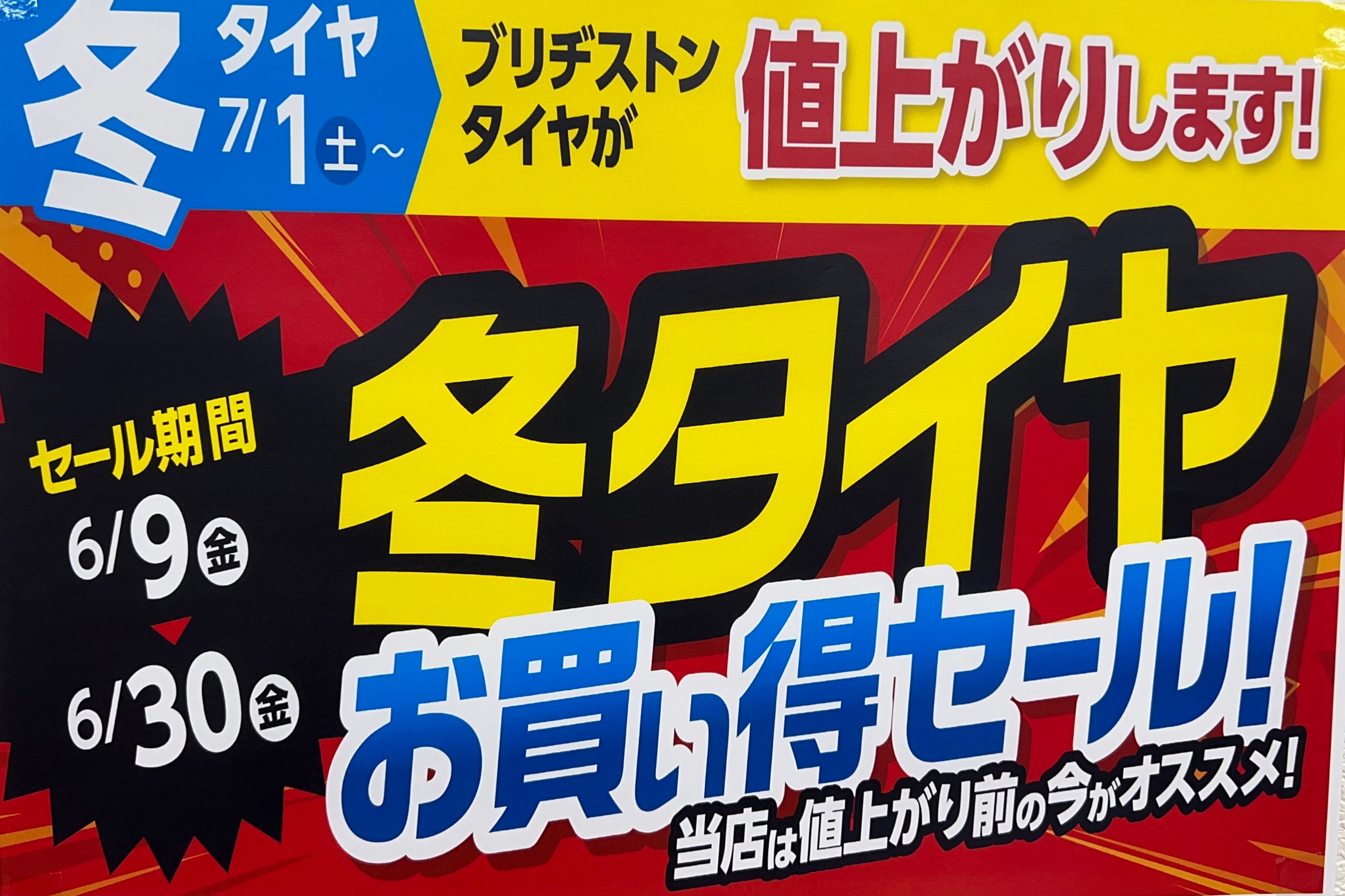 7月になるとブリヂストンの冬タイヤが8%値上がりすることはご存知ですか?