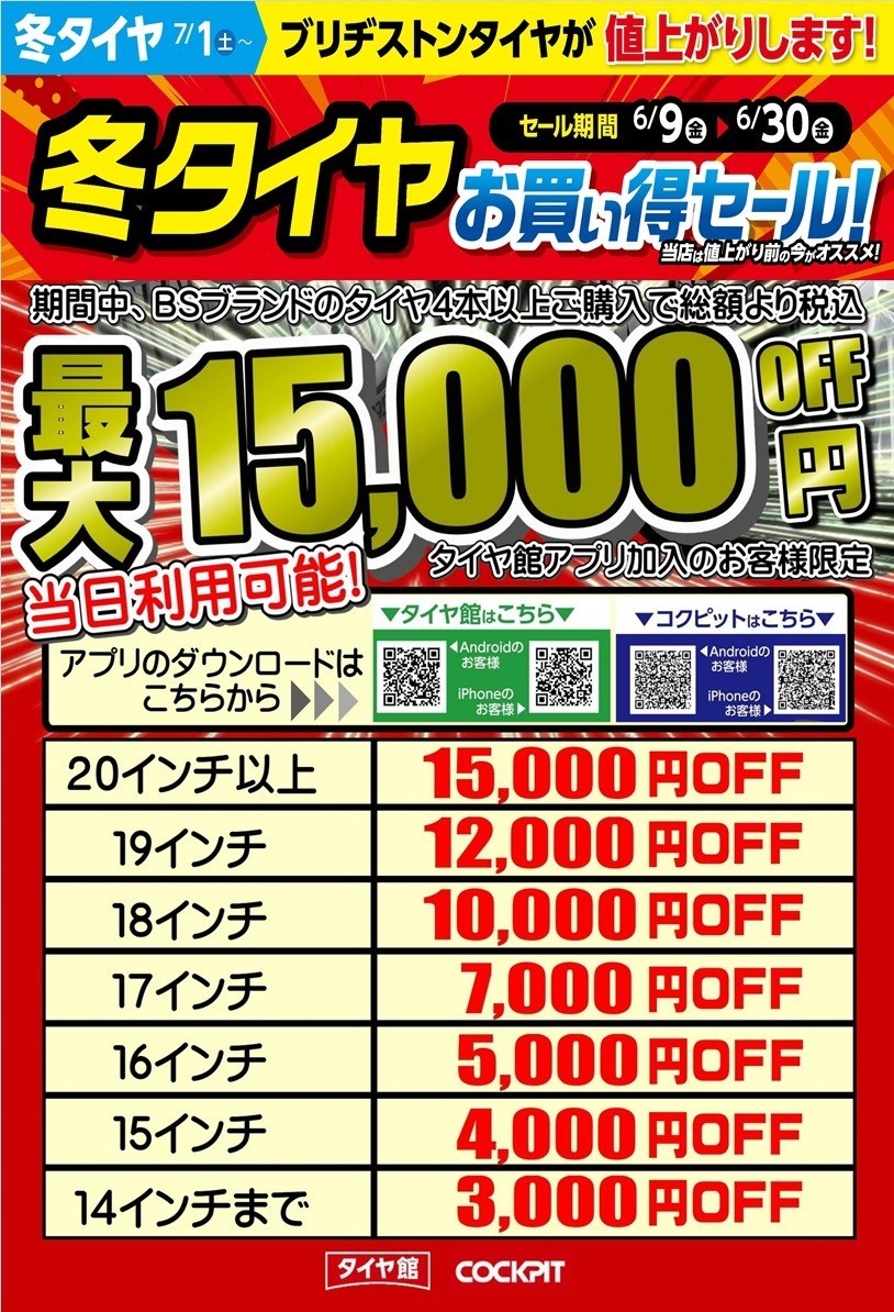 今月限定!アプリダウンロードでお得なタイヤクーポンも!!