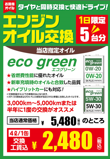 エンジンオイル交換キャンペーン開催中です!