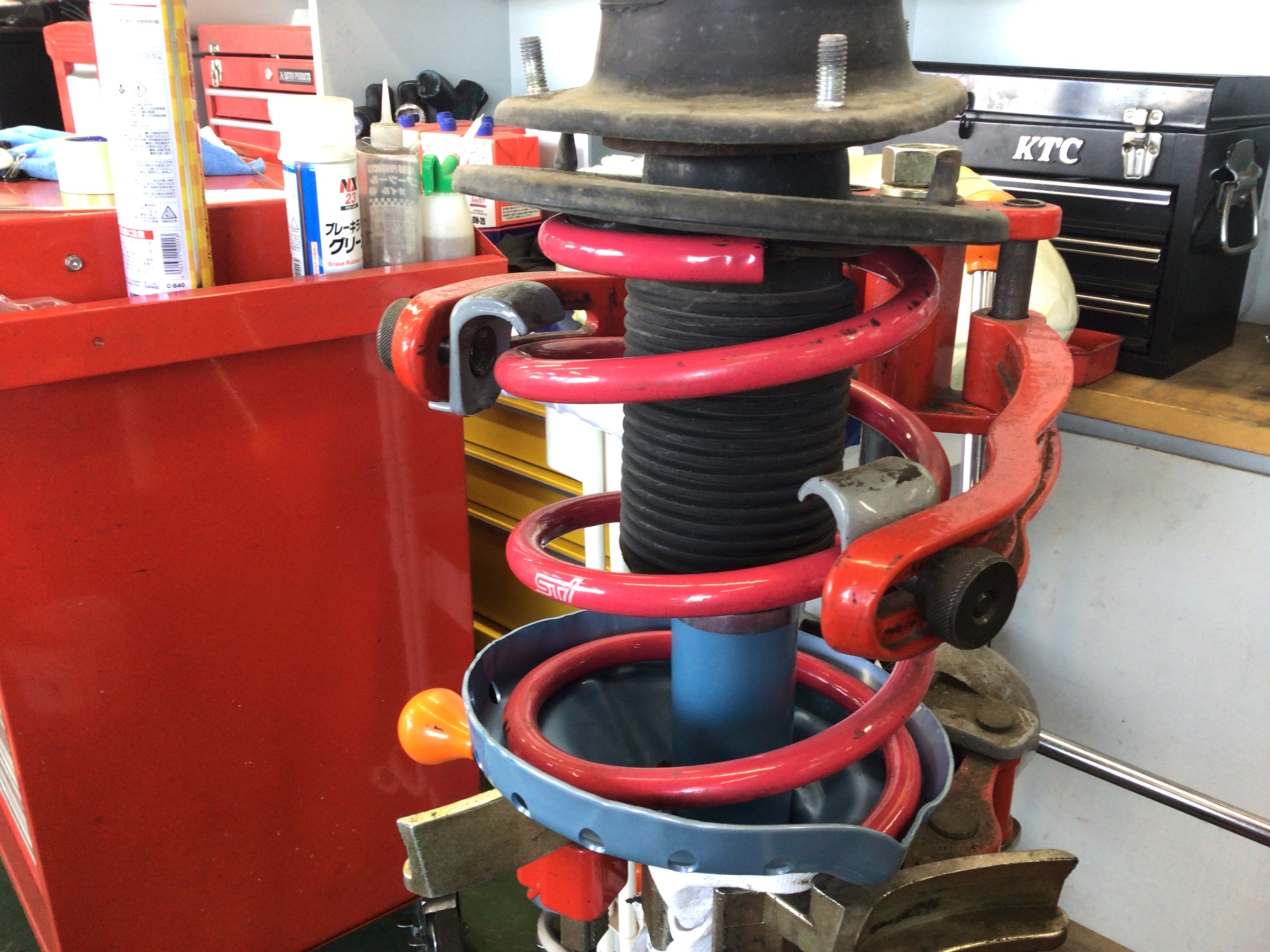 今回はスプリングもレッドのSTIに交換しました