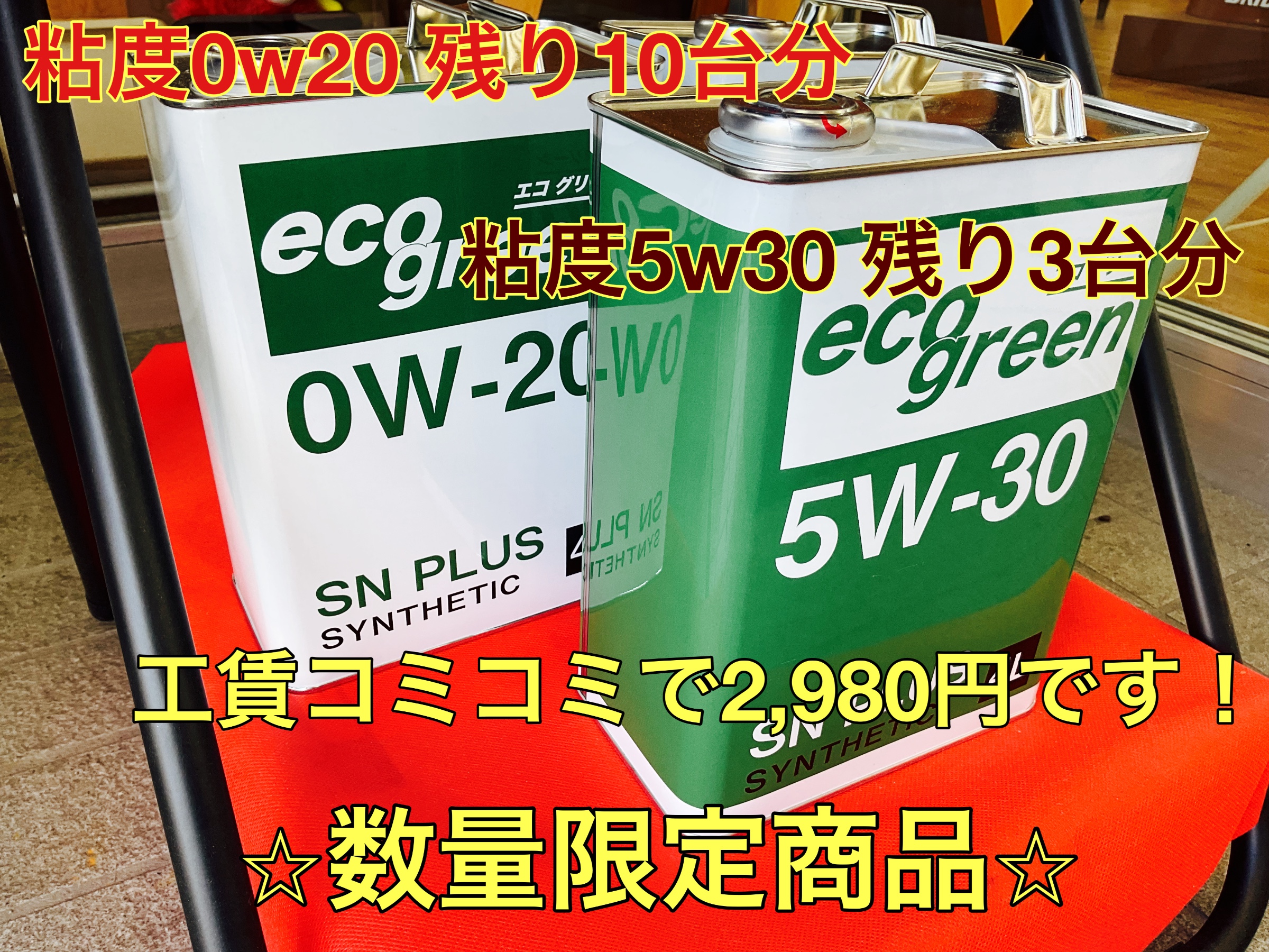オイル交換工賃もコミコミの価格になるのでお得ですよ〜!