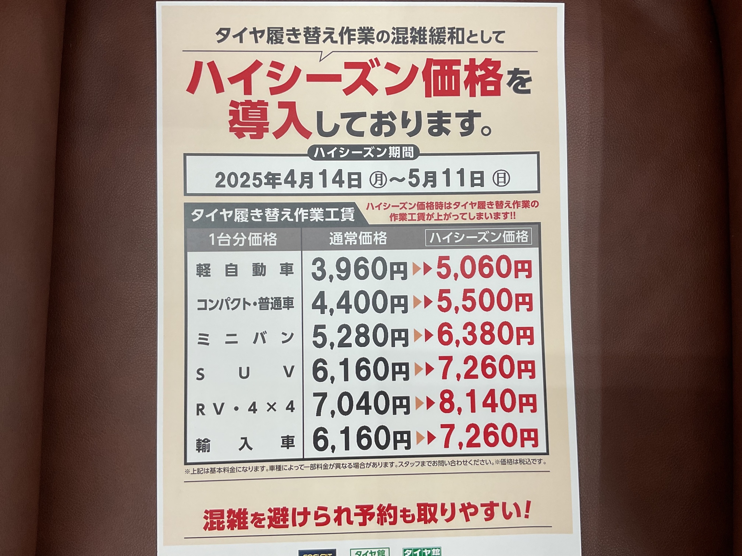 タイヤ点検・安全点検/タイヤ履き替え/オイル交換/その他ピット作業の予約カテゴリ:お知らせ