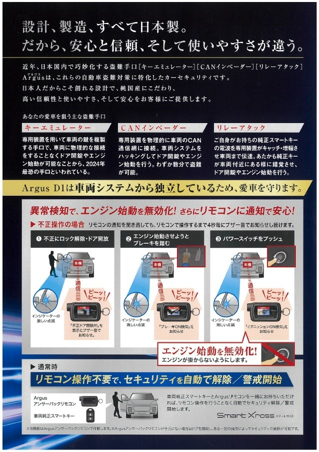 「アルゴスD1」は最新の盗難システム対策されている製品です