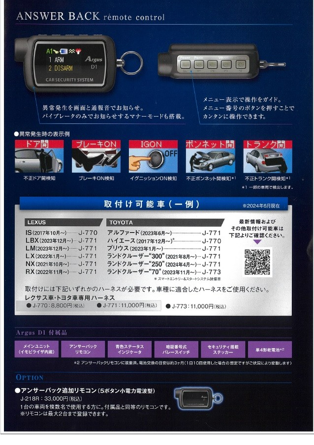 カーセキュリティ「アルゴスD1」取り扱い始めました