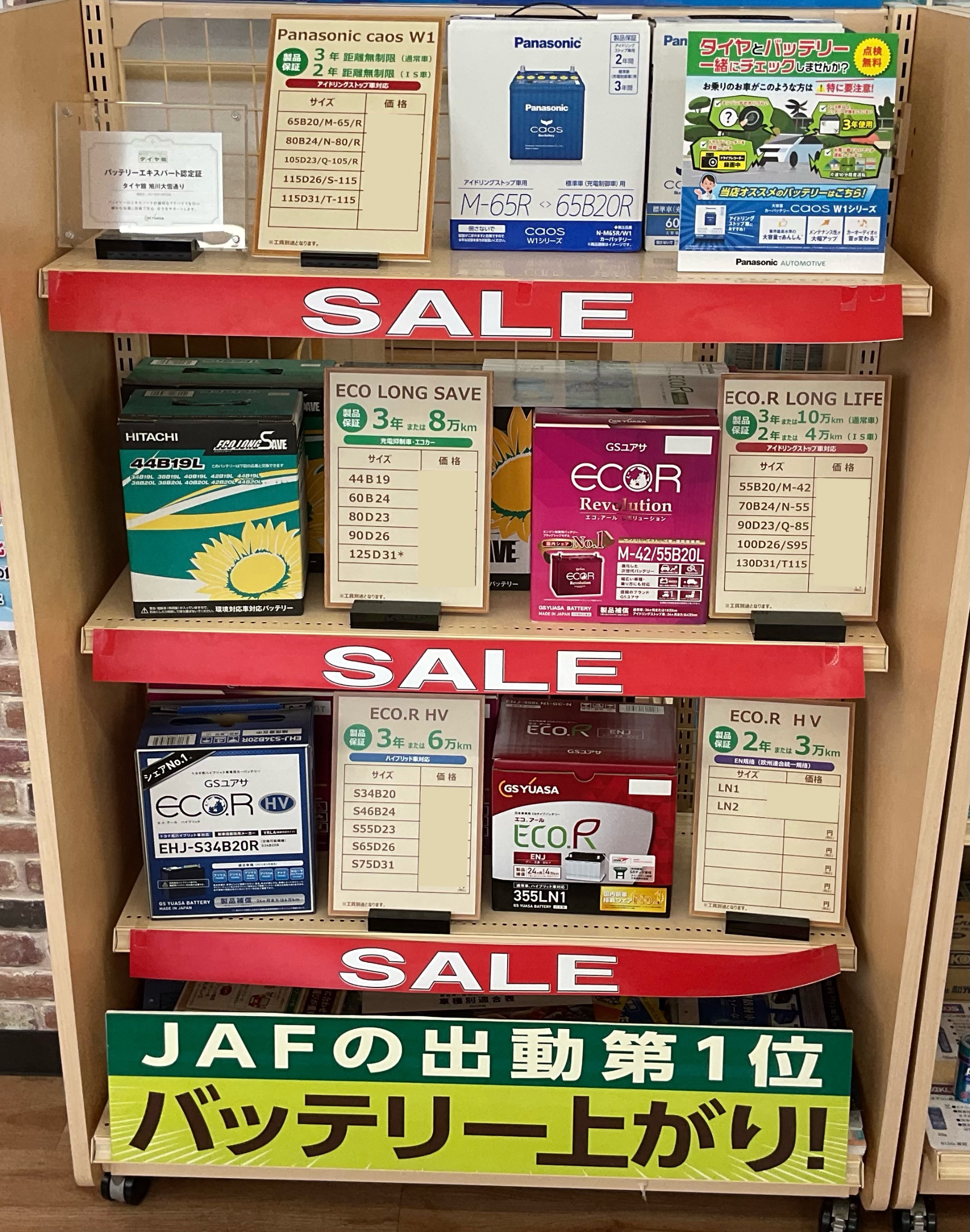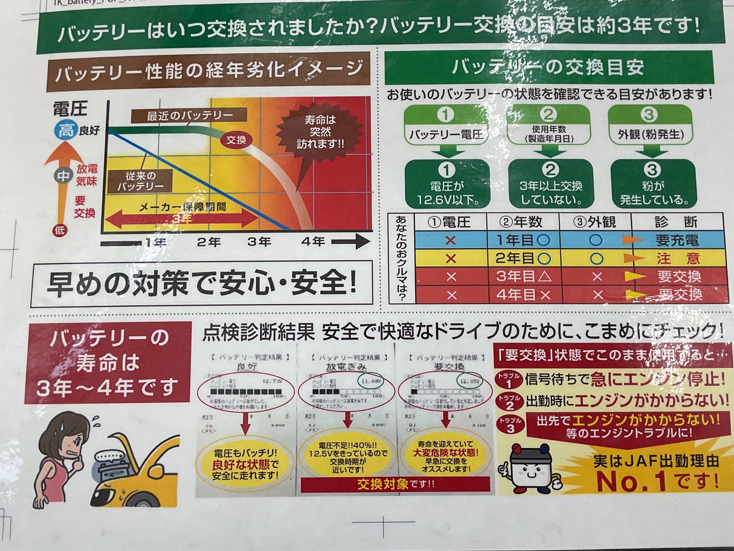 また、バッテリーだけでなくタイヤの減り具合やオイルの汚れなども無料で点検できるのでぜひいらしてください!