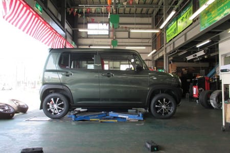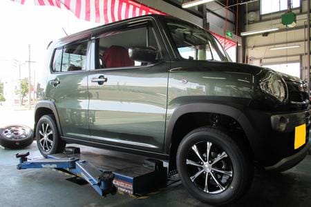 ハスラーの新品のタイヤ+ホイール交換+リフトアップ作業を行いましたよー♪