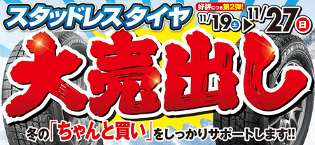 スタッドレスタイヤ大売り出しパート②まで残り1日!!!