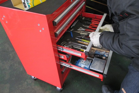 どうやら新しい工具箱が届いたみたいで、工具のお引越しを