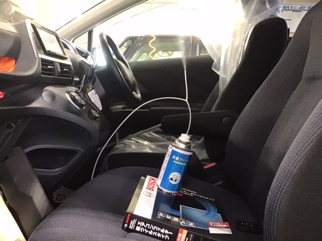 車内とエアコンフィルター両方に霧状のミストを吹き付け除菌と消臭を行ないます。