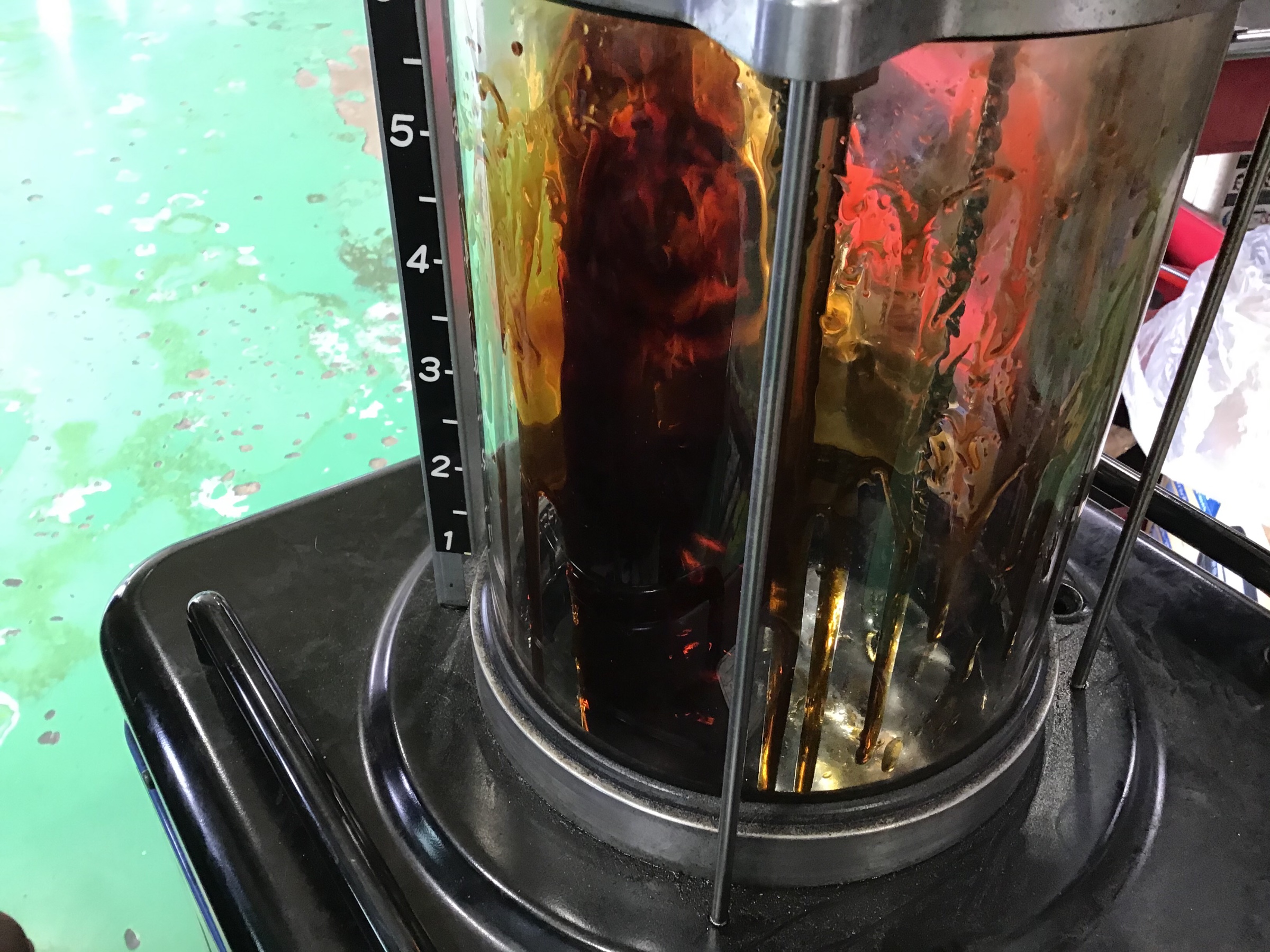 こちらが、抜いている最中のオイルになります。
