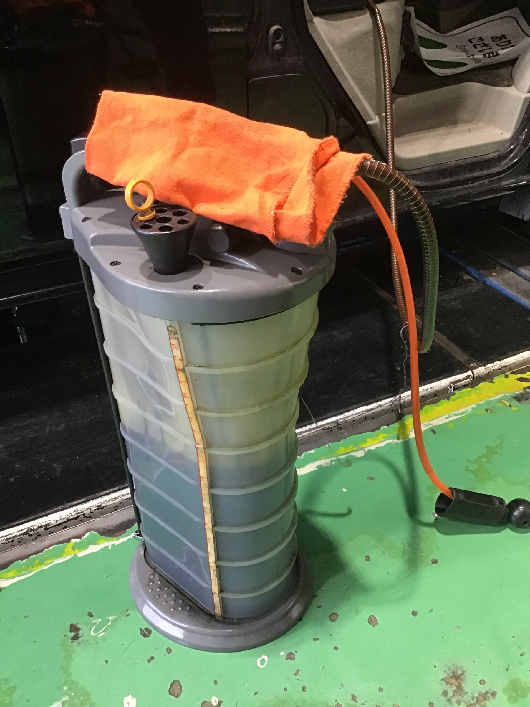 上抜きチェンジャーを使用しオイルを抜いて行きます。